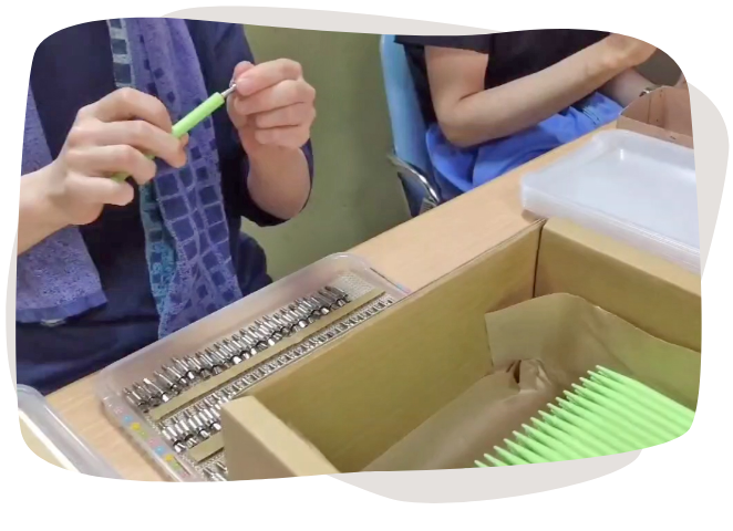 NPO法人もなか会・紙再生工房では、地域の皆さまや企業・団体から多様なお仕事を受注し、スタッフ一人ひとりが自分に合った作業を分担・協力しながら取り組んでいます。